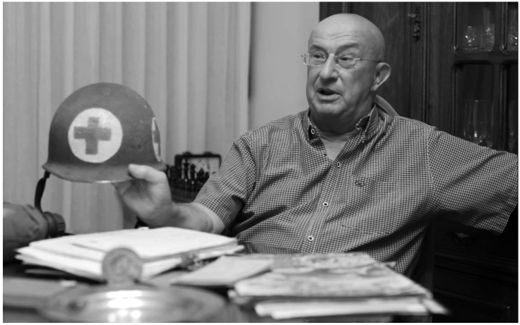 Esa relación entre objeto, memoria, cuerpos y sentidos se repite en todas las entrevistas. El pasado se corporiza en el tatuaje de Silvio. El pasado se quiebra en la voz de José evocando la primera cena de posguerra con su mamá. El pasado llora cuando Jorge gestualiza las lágrimas que caían por la mejilla de su papá. La experiencia bélica se funde en los cuerpos de los entrevistadores que ahora replican las historias oídas en artículos, charlas y nuevos soportes de memoria.