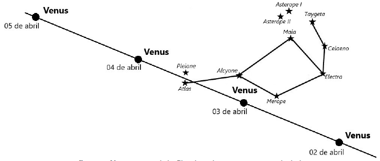El sentido de la relación entre las Pléyades (7 puntos) con Venus (5 puntos), no es casual, pues en las celebraciones toxiuh molpilia coinciden en la bóveda nocturna a la medianoche. Al traspasar al conjunto de 7 estrellas que conforman las Pléyades, Venus es parido simbólicamente por la diosa 7 serpientes, símbolo de la fertilidad entre poblaciones nahuatlatas, con lo cual se aseguraba la supervivencia humana por 52 años más (Márquez 2015: 343-258; 2017: 107-136; 2019). Este evento no solo ocurre en cada cierre de toxiuh molpilia, sino realmente se manifiesta cada 8 años, como se ha documentado periódicamente (figura 12).
