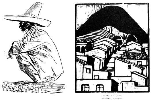 Figura 1 Ejemplos de estereotipos de México y el mexicano en la primera mitad del siglo XX. Izquierda, Howard Willard, 1940 (Downing 1940: 275); derecha, Carlos Orozco, ca. 1925 (Gruening 1928: 652).