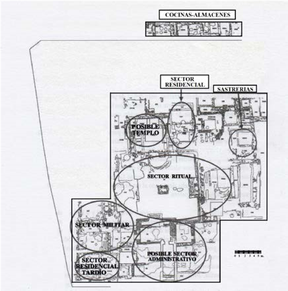 Figura 1 Imagen en planta de Teopancazco y sus sectores funcionales.