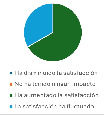 Los resultados arrojan que efectivamente la era digital ha tenido un impacto altamente positivo en la satisfacción de los miembros de las cooperativas, esto se puede inferir que la digitalización ha sido beneficiosa, y este impacto positivo podría deberse a mejoras en la eficiencia, accesibilidad, comunicación o en la calidad de los servicios que se proporcionan en cada cooperativa, sin embargo, hay miembros que han experimentado fluctuaciones en su satisfacción, entonces aunque la digitalización ha tenido beneficios, también ha habido momentos en los que no ha sido tan efectiva o ha creado algún tipo de incertidumbre o inconvenientes temporales, es relevante que ningún miembro haya percibido un disminución en su satisfacción, y si los hay, no han sido lo suficientemente significativos como para afectar negativamente la percepción general de los miembros. Se concluye que con estos resultados se puede motivar a las cooperativas a seguir invirtiendo en la digitalización y mejorar los aspectos que pueden estar causando fluctuaciones en la satisfacción para asegurar que más miembros beneficien sus beneficios consistentemente.