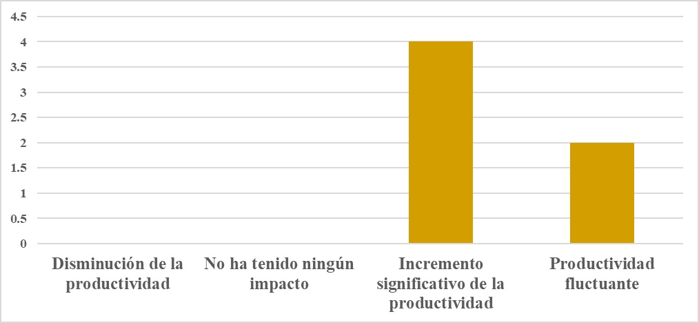 La mayoría de los encuestados están de acuerdo en que la digitalización ha tenido un impacto positivo y significativo en la productividad. Esto sugiere que la implementación de tecnologías digitales ha permitido a las cooperativas mejorar sus procesos, reducir tiempos y costos y aumentar la eficiencia general, algunos encuestados consideran que la productividad ha sido variable, esto podría deberse a varios desafíos que probablemente estén surgiendo con la implementación de nuevas tecnologías. La percepción positiva sobre el impacto en la productividad evidencia que la digitalización ha optimizado procesos clave, reduciendo tiempos y costos. Esto se traduce en operaciones más ágiles y en una mejor capacidad de respuesta a las necesidades de los socios.