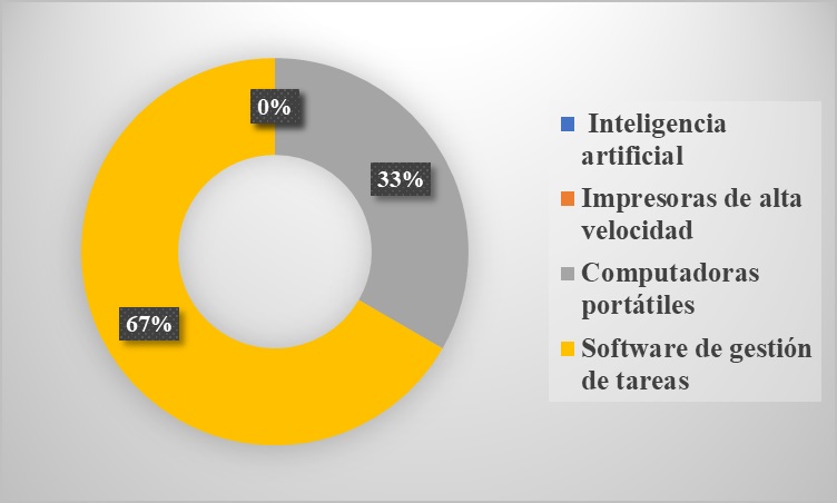 Los resultados indican que la mayoría de los encuestados consideran que la tecnología que ha demostrado ser la más efectiva para aumentar la productividad en las cooperativas es el software de gestión de tareas, las computadoras portátiles también obtuvieron una puntuación decente, lo que significa que también contribuyen significativamente a la productividad, aunque en menor medida que el software, estas herramientas aumentan la eficiencia al reducir la duplicación de esfuerzos y facilitar el monitoreo continuo.