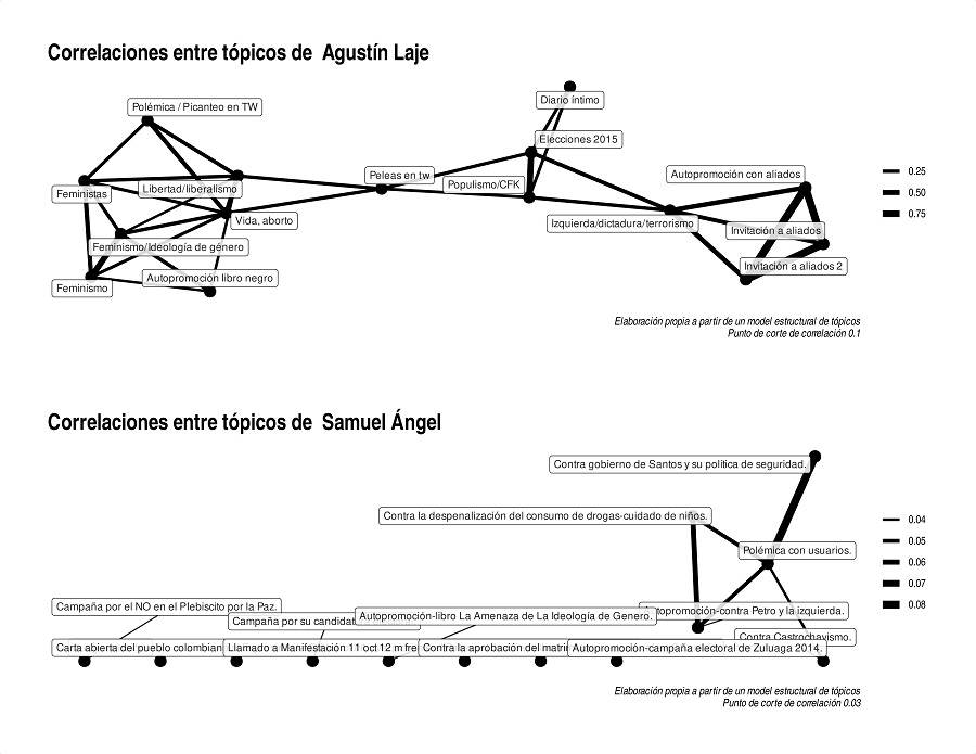 Gráfico 3 Red de correlaciones entre temas de Laje y Ángel