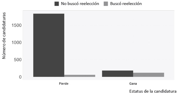 Hipótesis 2: Los candidatos a puestos legislativos que intentan reelegirse tienen mayor probabilidad de ganar la elección.