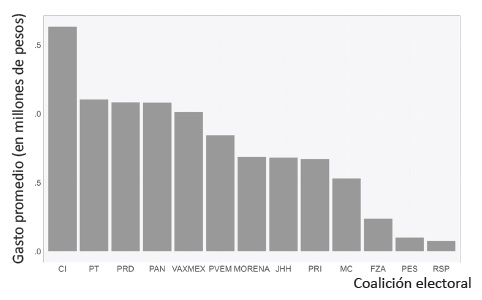 | Coalición electoral (o partido político) | Gasto promedio (pesos) |