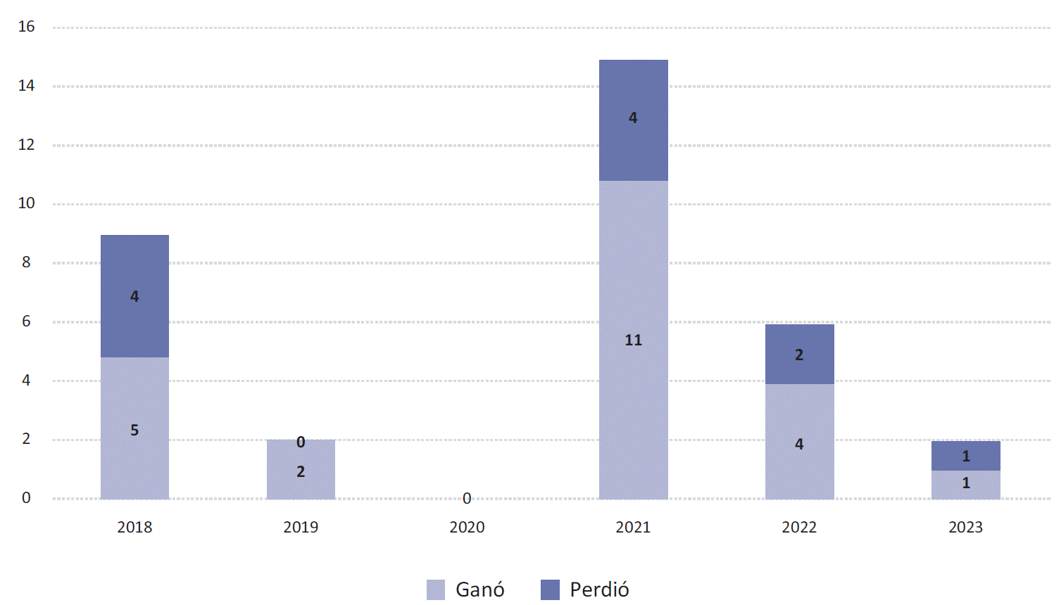 Gráfica 1 Elecciones a gobernador ganadas y perdidas por MORENA según año (2018-2023)