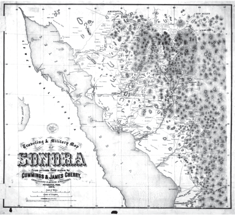 Cummings y James Cherry, Traveling and Military Map of Sonora, Pittsburgh, Pensilvania. 1867. Mapoteca Manuel Orozco y Berra, núm. clasificador 10705-CGE-7215-A http://w2.siap.sagarpa.gob.mx/mapoteca/