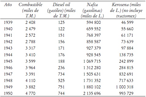 Entre 1943 y 1950 sólo el petróleo crudo se ubicó entre los artículos con mayor valor de intercambio (es decir, superior a los 100 000 000 de pesos corrientes).