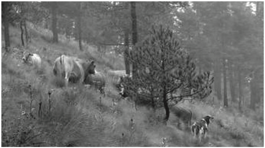 Los bosques de las cuencas de los ríos Magdalena y Eslava son, aún hoy, a principios del siglo XXI, trascendentes por su valor ambiental, su alta biodiversidad y por ser la principal fuente de agua superficial de la ciudad de México. Los más de 30 km2de superficie boscosa que todavía existen incluyen pinos, abies y encinos junto con pastizales, matorrales y algunos manchones de actividad agrícola.10 Estos bosques, como puede suponerse, conformaban territorios más grandes y densos en la segunda mitad del siglo XIX.11 (Foto 1)