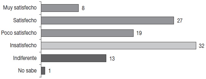 Si bien, por un lado, alrededor de una tercera parte de los encuestados afirmó estar insatisfecha con estos estadios, por el otro, 54% informó estar satisfecho. En cuanto al último grupo, más detalles nos permitieron establecer un nivel de clasificación. Como resultado, sólo 8% declaró estar “muy satisfecho” -categoría de mayor intensidad de satisfacción-, mientras que 27% informó estar “satisfecho”, y 19% dijo estar “insatisfecho”, categoría de menor nivel de satisfacción.