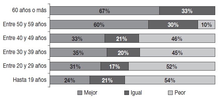 Este porcentaje aumenta a 31% y a 35%, respectivamente, entre los encuestados de entre 20 y 29 años y quienes tienen entre 30 y 39 años. Los aficionados de entre 40 y 49 años constituyen un porcentaje menor que el de la categoría anterior, aunque es bastante similar (33%). Por último, los encuestados de entre 50 y 59 años de edad y los mayores de 60 representan los mayores porcentajes -60% y 67%-, considerados los mejores. Así lo refleja la siguiente gráfica: