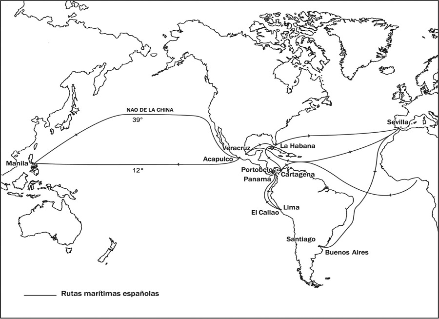 Si aceptamos que en el siglo XVII se afianzaron de forma du rade ra las conexiones de larga distancia entre las diferentes partes del mundo, indudablemente los marineros desempeñaron un papel clave en la globalización temprana. Europa, América, Asia y África estuvieron comunicadas por barcos gobernados por hombres, todos actores de un mundo que se iba transformando. Los estudios históricos que enfocan su mirada en las vidas globales son ahora múltiples y fuente de debate historiográfico.15 Si nos interesamos en los tripulantes, la definición sintética que propone Brice Cossart de las vidas globales, la de “individuos que estuvieron involucrados en interacciones de larga distancia entre varias partes del mundo”,16 podría corresponder a nuestro propósito. Sin embargo, una vida “global” se caracteriza también por las andanzas, voluntarias o forzadas, de algunos individuos que tuvieron que desplazarse por el mundo cruzando fronteras espaciales, culturales, religiosas o políticas. En nuestro estudio no es el caso o, por lo menos, sólo de forma muy limitada. Los marineros se movieron por océanos, pero aparte de cruzar mares, no cruzaron fronteras. Se desplazaron por rutas marítimas que dominaban los españoles y que conectaban espacios conquistados desde hacía más de un siglo. Llegaban a puertos asiáticos (Cavite en Manila) o americanos (Acapulco, Veracruz, Cartagena de Indias, Portobelo, El Callao, La Habana…) que ya poseían una infraestructura marítimo-militar y administrativa (política y religiosa) española.17 Los marineros, artilleros y pilotos de la Carrera de Indias y de la Nao de China conocían el espacio marítimo que cruzaban y sus rutas ya estaban bien establecidas.18 Sabían cuánto tiempo (más o menos) iban a tardar: en definitiva, salían de un puerto español para llegar a otro en territorios americanos o asiáticos bajo tutela española. Viajar por el Atlántico o el Pacífico ya no era para ellos una experiencia tan singular como para los marineros del siglo XVI. Los tripulantes del siglo XVII fueron los artífices de un mundo cada vez más conocido y sobre todo conectado gracias a su labor.