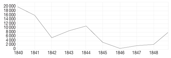 Gráfica 1 fluctuación de los volúmenes de entrada de esclavos a cuba (1840-1848)