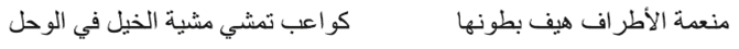 Cuello: es uno de los componentes recurrentes en las composiciones líricas árabes; se suele describir como largo, esbelto y adornado. A menudo se compara con el del antílope o la gacela (Al-Ḥūfī 1950, 46-47).