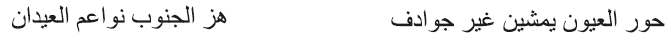 El parangón de los ojos con animales como la gacela y el órix es quizá su representación más idealizada, y siempre son negros, grandes y penetrantes. Además, como refleja el último verso, es pertinente la alusión al poder que ejercen y la magia de su mirada (Tağūr 1999, 312-313).