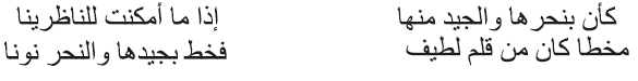 En ambos versos se evidencia una expresión frecuente en la estética literaria árabe que resalta la largura del cuello de una mujer haciendo referencia a cuán alejado queda su pendiente, como si de un abismo se tratara.
