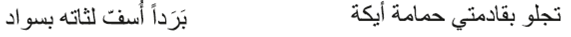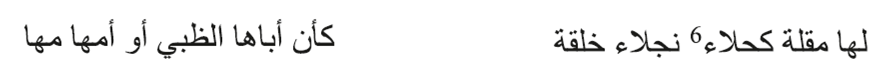 En el verso, las alas de la paloma acentúan la negrura de las encías de la mujer. Es frecuente esta analogía, debido a la costumbre preislámica de aplicarse antimonio en las encías para oscurecerlas y resaltar la blancura de los dientes (Al-H̱ālidiyyān 1965, 166).