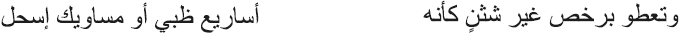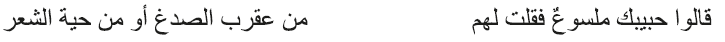 Las metáforas zoomorfas como recurso descriptivo de la amada, que analizaré más adelante, también está presente en la caracterización del cabello, y un ejemplo es el siguiente verso de Al-‘Arğī (siglo VIII):