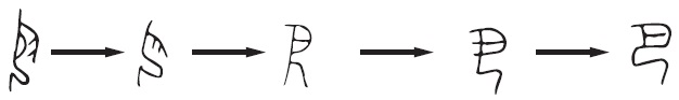 (ren 人, persona). Sin embargo, como la escritura todavía no estaba estandarizada en la dinastía Shang (ca. 1600 a.e.c.-1046 a.e.c.), un carácter se podía escribir de varias maneras. Además de basarse en el carácter
