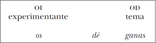 En este reacomodo de funciones debe de haberse dado una serie de influencias mutuas entre distintas construcciones, como aquellas entre los verbos placer, pesar y gustar, en las que se fija un objeto indirecto con el rol de experimentante (cf. Melis et al. 2003, pp. 2-26), y las construcciones de dar con un sustantivo de afección, de las que DAR gana es en su origen una instancia particular.