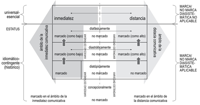 La propuesta de un sistema de escritura particular para una determinada variedad lingüística que no dispone de él es uno de los pasos clave, quizás el más importante, de los procesos de estandarización (cf. Cheshire & Stein 1997). Er prinzipito debe entenderse, pues, como un intento de estandarización del andaluz que satisface las reivindicaciones de la ZEA. Este intento de estandarización es, sin embargo, teóricamente inviable, puesto que se basa no sólo en rasgos diatópicamente marcados sino, sobre todo, en rasgos diastrática y diafásicamente marcados como bajos. Tal como vimos en el apartado “Traducción, normalización…”, lo estándar se identifica con lo no marcado, o en todo caso con lo marcado en el ámbito de la distancia comunicativa -ésta es la visión tradicional, también presente en Koch y Oesterreicher 2007 [1990]; cf. Del Rey 2021-, pero nunca con lo marcado en el ámbito de la inmediatez. La proliferación de rasgos propios de este ámbito en [And] es consecuencia del interés constante del autor por alejarse en la mayor medida posible en cada caso del lado central y derecho del esquema en la cadena de variedades (cf., de nuevo, Figura 1) para evitar la convergencia con [Esp1]. La traducción de Bonifacio del Carril representa la norma de un español estándar33 que funciona como variedad antagonista y fuerza coercitiva, idea que no comparte la gran mayoría de los andaluces, de ahí el revuelo mediático que originó la aparición de esta “traducción”.