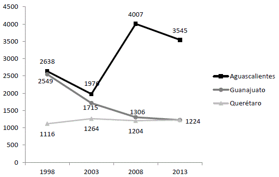 Source: Author’selaboration based on INEGI data (1999, 2004, 2009, 2014).