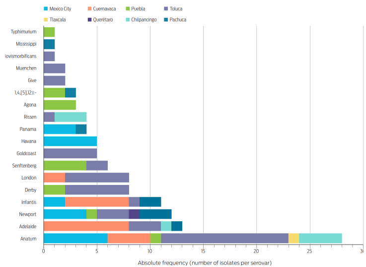 In its 2015 report on foodborne diseases, the World Health Organization (WHO) reported that non-typhoidal salmonellosis occurs at an annual rate of 150 million cases and causes 60 thousand deaths.1 In Mexico, the incidence of the disease in the last decade (> 60 cases/100 thousand inhabitants)2 is at least three times higher than that of developed countries, highlighting its epidemiological importance in our country.