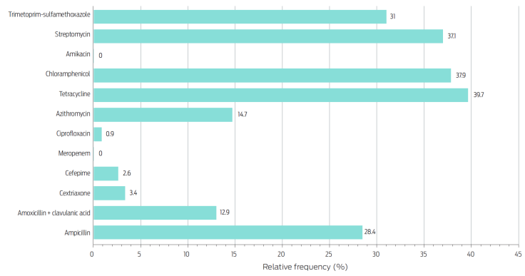 The latter findings are more relevant in the context of the uprising AMR observed in SE strains, with increasing proportions of MDR phenotypes (26-70 %), both in Mexico and other countries.4-7 This evidence suggests that at least part of the salmonellosis outbreaks linked to ground beef could involve MDR strains. Such reasoning is plausible considering that it occurs in developed countries with far lower SE ground beef contamination rates compared to those observed in Mexico.8