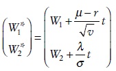 Por lo tanto, los procesos para el precio de la acción y para la varianza son, respectivamente,