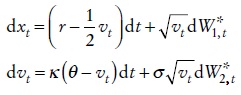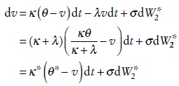 donde κ* = κ + λ y θ* = κθ/(κ + λ) son los parámetros neutrales al riesgo. Si se omite el asterisco de κ * y θ*, los procesos para el precio de la acción y la varianza son: