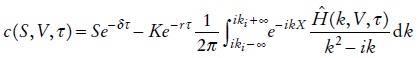 Donde X = 1n S/K + (r - δ)τ, ki = ½ y δ es la tasa de dividendos. Para el modelo de Heston la transformada fundamental es de la forma: