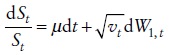 donde W2,t es un proceso de Wiener correlacionado con W1,t , i.e., Cov(dW1,t, dW2,t) = ρ. Para simplificar el modelo, se aplica el lema de Itô con el fin de obtener el proceso para la varianza vt, el cual se puede expresar como un proceso del tipo Cox, Ingersoll y Ross (1985), es decir,