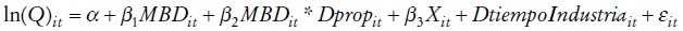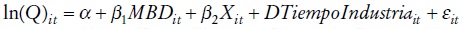 Se incluyen también en el análisis dummies que captan de manera con-junta el efecto temporal y del sector industrial de cada empresa (DTiempo-Industria). ε it se corresponde con el término de error estocástico.