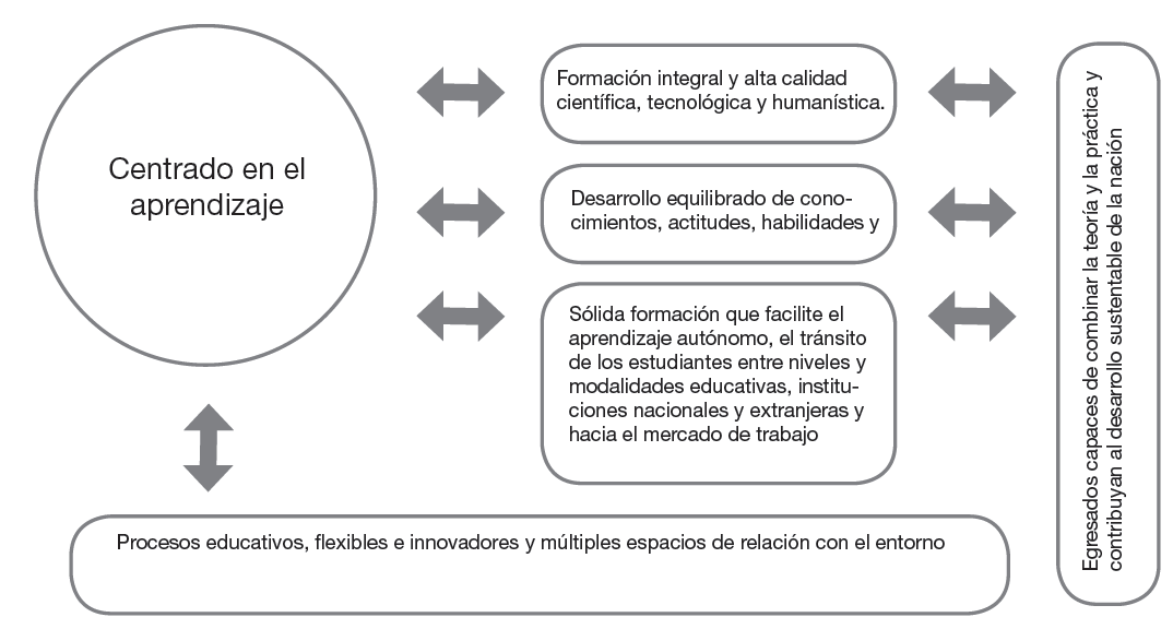 De esto, podemos derivar que el nuevo modelo tiene como característica esencial estar centrado en el aprendizaje, que también busca: a) promover una formación integral (alta calidad científica, tecnológica y humanística); b) combinar el desarrollo de conocimientos, actitudes, habilidades y valores; c) proporcionar una sólida formación que facilite el aprendizaje autónomo; y d) permitir a sus egresados el ser capaces de combinar la teoría y la práctica.