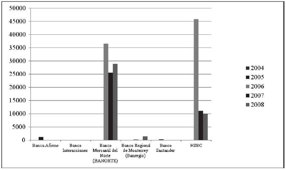 Fuente: Elaboración propia con base en la información de los sitios de Internethttp://www.bankscope.com y http://www.deaos.com, diversas fechas de consulta.