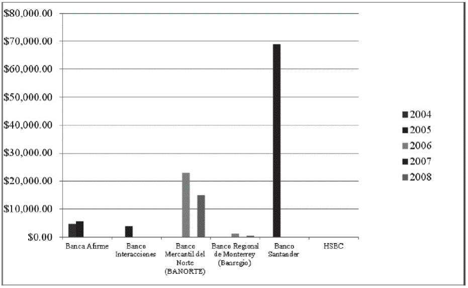 | Banco Mercantil del Norte (BANORTE) | $ | - | $ | - | $36,523.45 | $25,477.12 | $28,908.69 | - | $ | - | $ | - | $23,014.26 | - | $15,078.08 | |||||