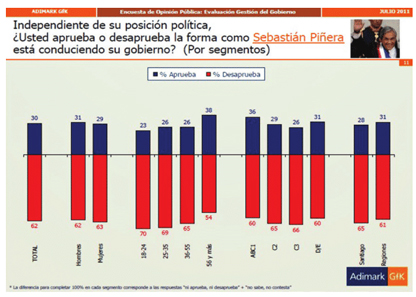 El docente analizó los resultados en conjunto con los estudiantes destacando los siguientes elementos: a) La observación de los múltiples usos de la estadística descriptiva en una y dos variables en los distintos ámbitos, del entorno social y profesional, b) el análisis de los distintos enunciados presentes en las noticias de actualidad, anuncios que cualquier ciudadano debe leer y entender con información numérica y gráfica, c) seleccionamos algunos trabajos para comentar cómo se presentan los datos y los distintos conceptos estadísticos y gráficos encontrados en los medios de comunicación. Un ejemplo se muestra en la Figura 1 en el ámbito político de interés por un grupo de estudiantes.