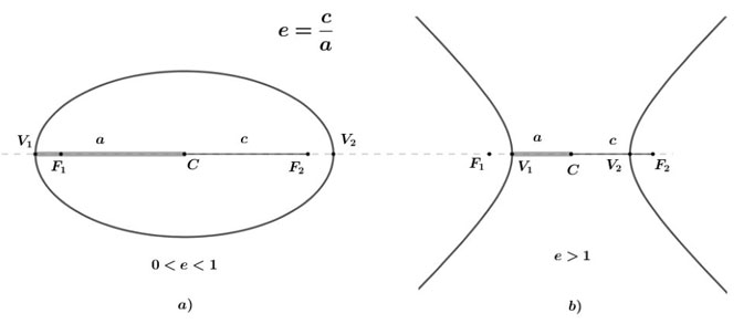 Figura 2 Excentricidad de la elipse y de la hipérbola en el AB.