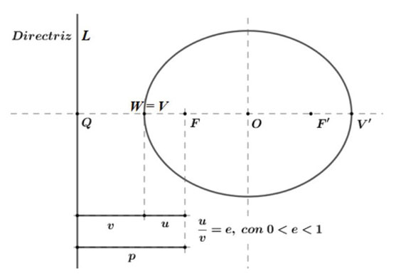 Figura 6 La elipse en su definición foco-directriz, con u/v=e