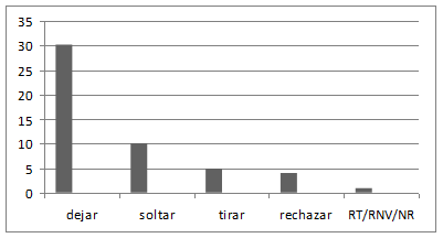En cuanto al procesamiento de los datos recabados y el modelo de análisis aplicado, se registraron de manera conjunta las respuestas tardías (=tiempo superior a seis segundos), respuestas no válidas y la ausencia de respuesta (respectivamente, RT, RNV y NR) por su valor en una prueba de estas características, en cuanto indicador de la eficacia en la recuperación léxica. Aunque los participantes proporcionaron más de una respuesta, lo cual es claro indicativo de la productividad de la relación, en este trabajo nos limitamos a analizar los datos correspondientes a la primera. Éstos nos han permitido realizar una comparación de frecuencias absolutas y porcentuales, que se muestran por categoría verbal.