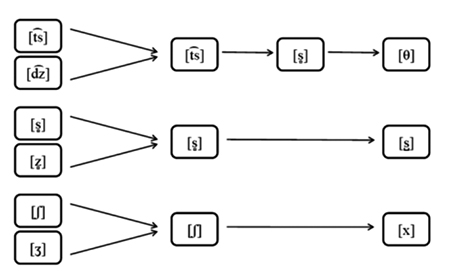 Es de común conocimiento entre los hispanistas que durante los siglos precedentes a la mencionada revolución el sistema de sibilantes castellanas era más complejo que el moderno; en concreto, existieron sibilantes sordas y sonoras, así como fricativas y africadas. Sin embargo, tras la época medieval se iniciaron tres procesos:10 por un lado, se perdió la distinción entre sordas y sonoras a favor de las primeras; por otro lado, las africadas se debilitaron y se convirtieron en fricativas; además, el punto de articulación de la predorsodental sorda se adelantó para evitar la homofonía y se creó el fonema interdental /θ/. Asimismo, el punto de articulación de la prepalatal se adelantó y velarizó. He aquí un resumen esquemático de los tres procesos: