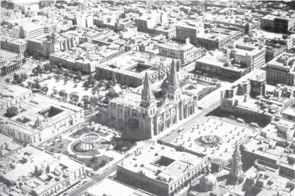 En las décadas de 1940 y 1950 el país adoptó una política de modernización. El gobernador de Jalisco, Jesús González Gallo (1947-1953), tuvo una interpretación radical; decidió que Guadalajara necesitaba amplios espacios abiertos, parques, y dejar de ser el “rancho grande”. La solución fue modernizar el casco histórico (Núñez, 1995, p. 277). Con anterioridad, el arquitecto Ignacio Díaz Morales había concebido la idea de dotar a la ciudad de una cruz de plazas que tuviera como centro la Catedral y que brindara espacios públicos y de comunicación a los tapatíos. Por intercesión del arquitecto Luis Barragán y del ingeniero Aurelio Aceves, los planes de González Gallo y las ideas de Díaz Morales convergieron. El proyecto de la cruz de plazas se inició enseguida: se expropiaron los predios particulares, se demolieron manzanas completas y sólo se dejaron en pie los elementos arquitectónicos que se consideraron de calidad; éstos fueron reusados en otras construcciones (González Gallo, 1953, p. 13). Así, en torno a la Catedral se crearon tres nuevos espacios públicos, además de la ya existente Plaza de Armas, ubicada al sur: la plaza de los Laureles al poniente, la plaza de la Liberación al oriente, y la entonces llamada plazuela de los Hombres Ilustres al norte.4