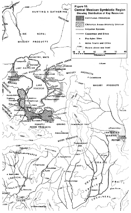 Figura 11 Mapa que indica sitios ubicados en la Cuenca de México de ocupación pre-Azteca y pueblos y ciudades aztecas y coloniales