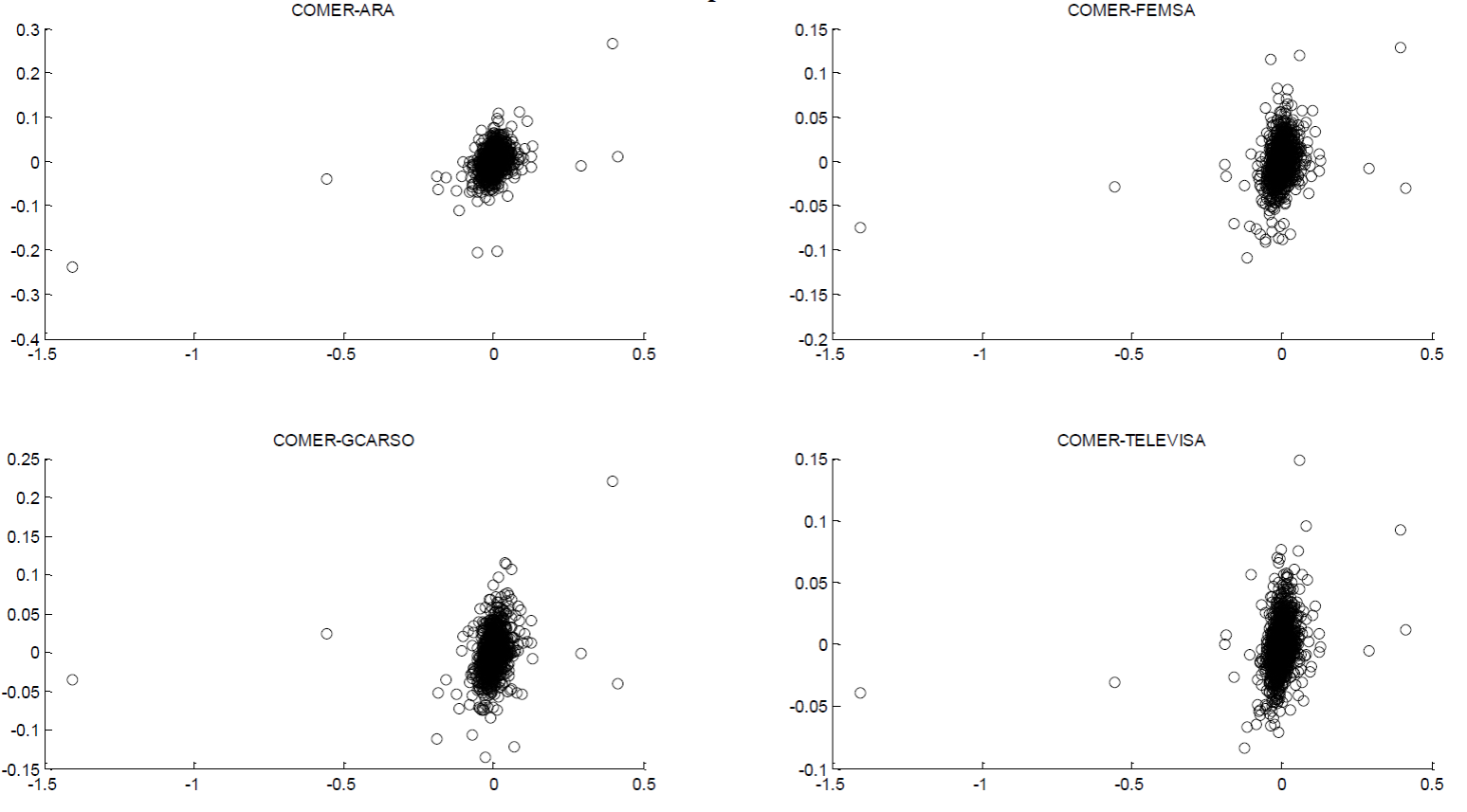 Esta opción permite trabajar con una expresión de la función característica multivariada manejable. A diferencia de Bonato (2012), quien emplea un modelo GARCH multivariado bajo la hipótesis sub-Gaussiana restringido a dos dimensiones, en la presente investigación, el modelo propuesto se aplica a un portafolio compuesto por 5 activos pertenecientes a la Bolsa Mexicana de Valores (BMV).