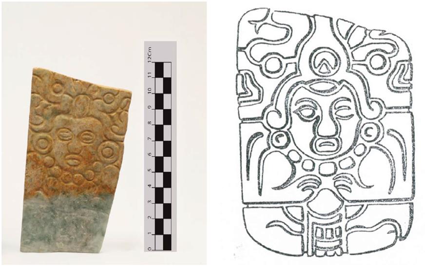 Es factible que algunas placas de piedra verde, manufacturadas en el Clásico Maya (250-900 d.C. -que incluye al Epiclásico del Centro de México [650-900]-) hayan sido conservadas en épocas posteriores. Esto no se pone en duda, pues como enuncian Melgar et al. [2018: 125], desde el Posclásico Temprano, pasando por el Posclásico Tardío, muchos objetos de este tipo fueron reutilizados: “esto explicaría que los mexicas estuvieran recuperando un gran número de reliquias que coinciden estilísticamente o tecnológicamente con piezas de sitios mayas del Clásico”.