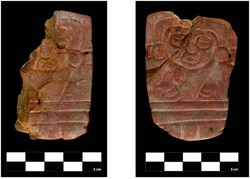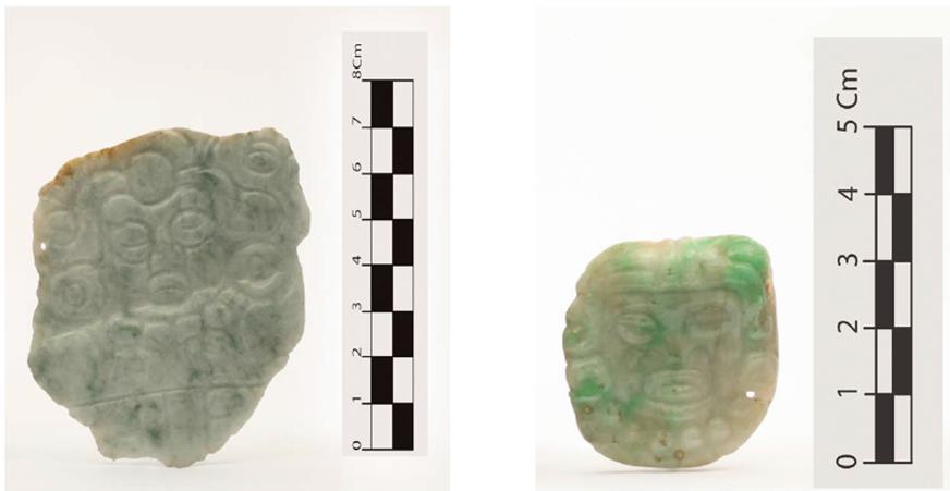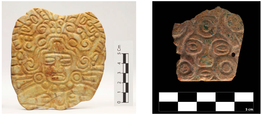 Figuras 4 y 5 Placa y pendiente del Entierro 1 de la Estructura C de Xochicalco.