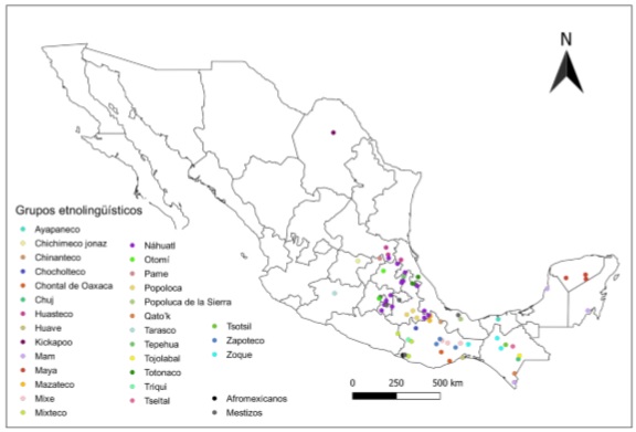 Localidad Municipio Estado Pueblo indígena Grupo etno­lingüístico Familia lingüística Número(s) de fuente(s)