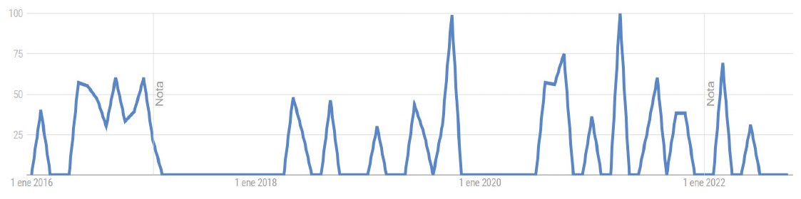 Gráfica 1. Interés de búsqueda en relación al término "burundanga" y "sumisión química" en el buscador de Google.
