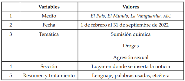 Tomando los gráficos facilitados por Google Trends, se observa el fenómeno que justifica la realización de un análisis del tratamiento de la sumisión química en las ediciones digitales de aquellos periódicos con mayor número de visitas, según el Estudio General de Medios, en su segunda y tercer ola: El País (>1 000 000), El Mundo (>600 000), La Vanguardia (>500 000) y ABC (>400 000). El periodo de análisis elegido abarca desde el 1 de febrero —pico de búsqueda según la anterior figura— hasta el 31 de septiembre de 2022, fecha cuando las consultas en Google bajaron considerablemente.